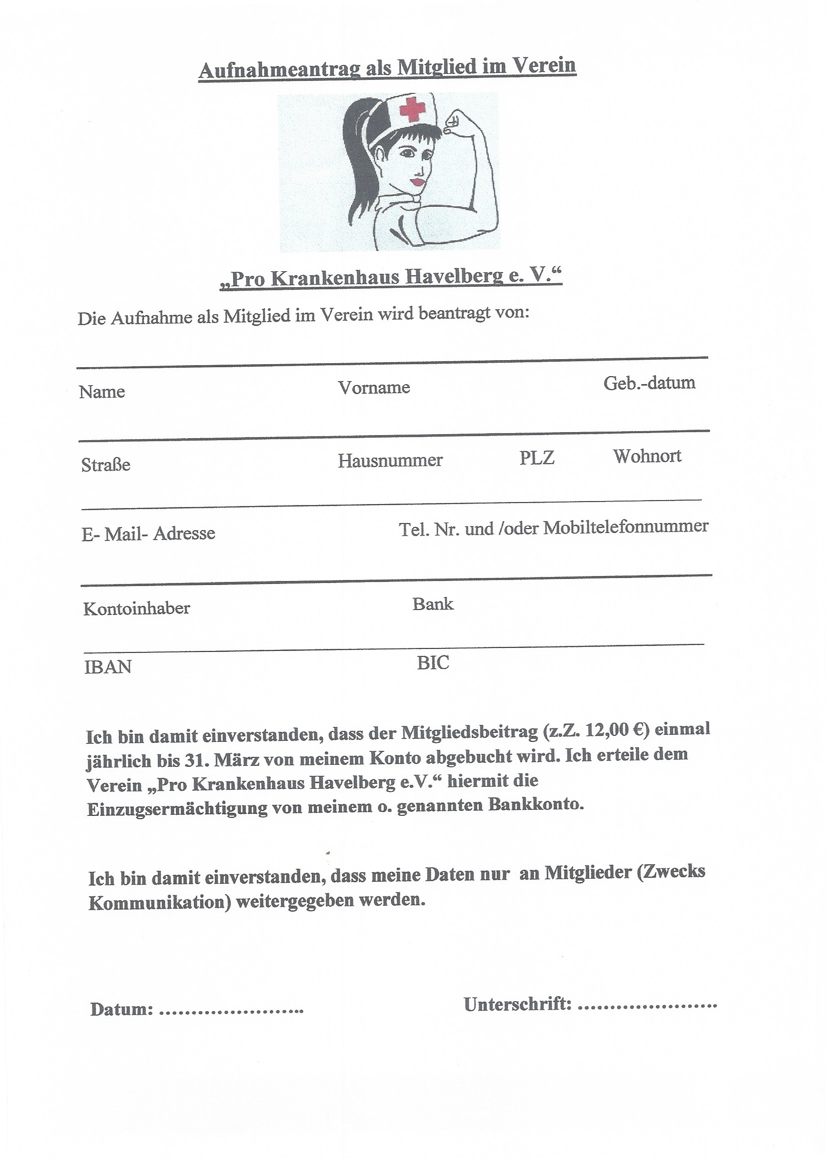 Aufnahmeantrag Verein