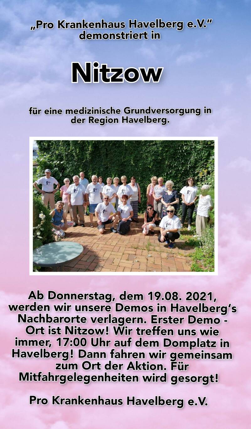 Ab Donnerstag, dem 19.08. 2021, werden wir unsere Demos in Havelberg‘s Nachbarorte verlagern. Erster Demo - Ort ist Nitzow! Wir treffen uns wie immer, 17:00 Uhr auf dem Domplatz in ! Dann fahren wir gemeinsam zum Ort der Aktion. Für Mitfahrgelegenheiten wird gesorgt!